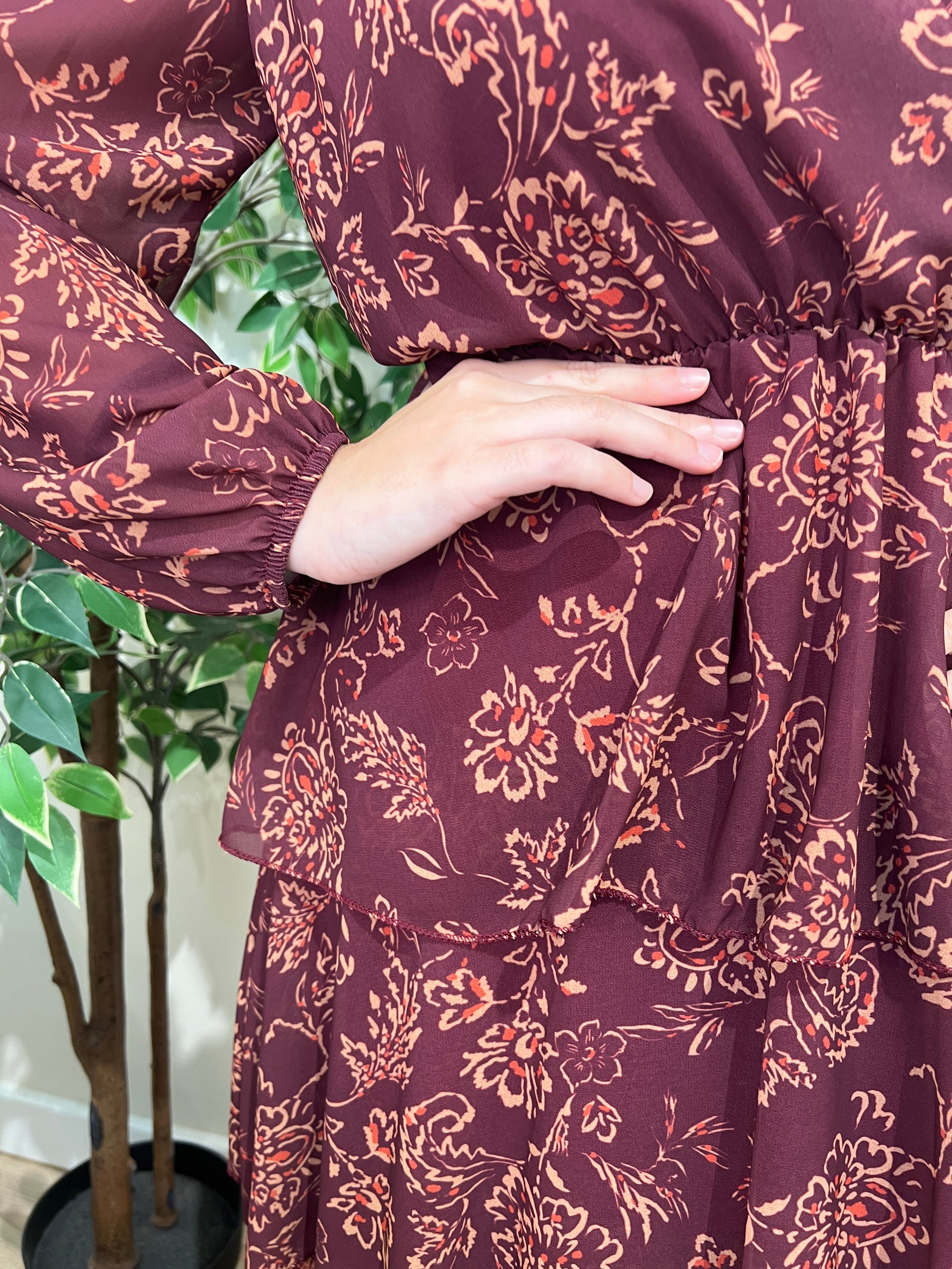 Vestido volantes granate